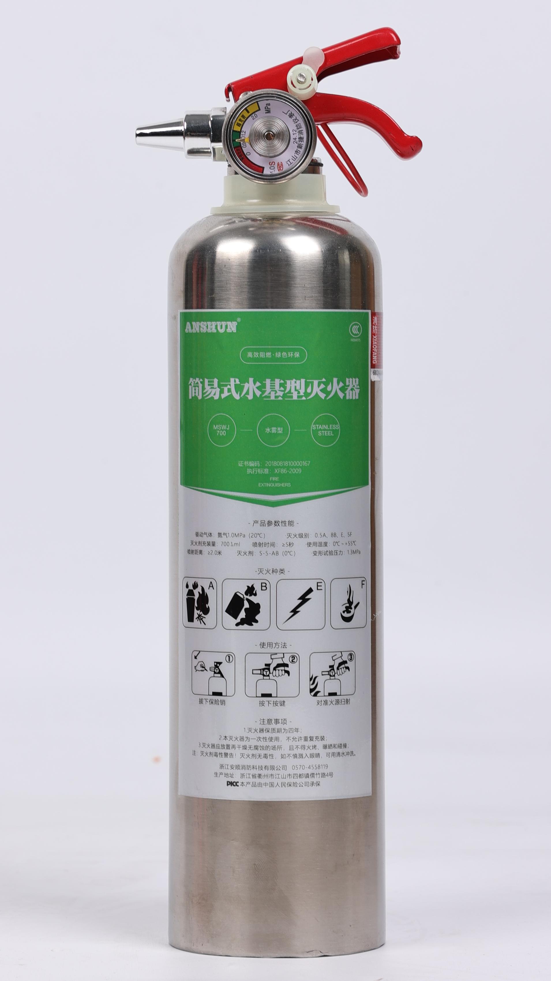 手提式水基型灭火器使用时,应手提灭火器提把,迅速奔到燃烧处。然后迅速拔出保险销,按下压把,此时泡沫即可喷出。泡沫喷出后,应对准燃烧最猛烈处喷射;灭火时,应随着喷射距离的缩减,使用者逐渐向燃烧处靠近,并始终让泡沫喷射在燃烧物上,直至将火扑灭。灭火器在使用时,一定要将灭火器保持直立状态,直至喷射完毕。