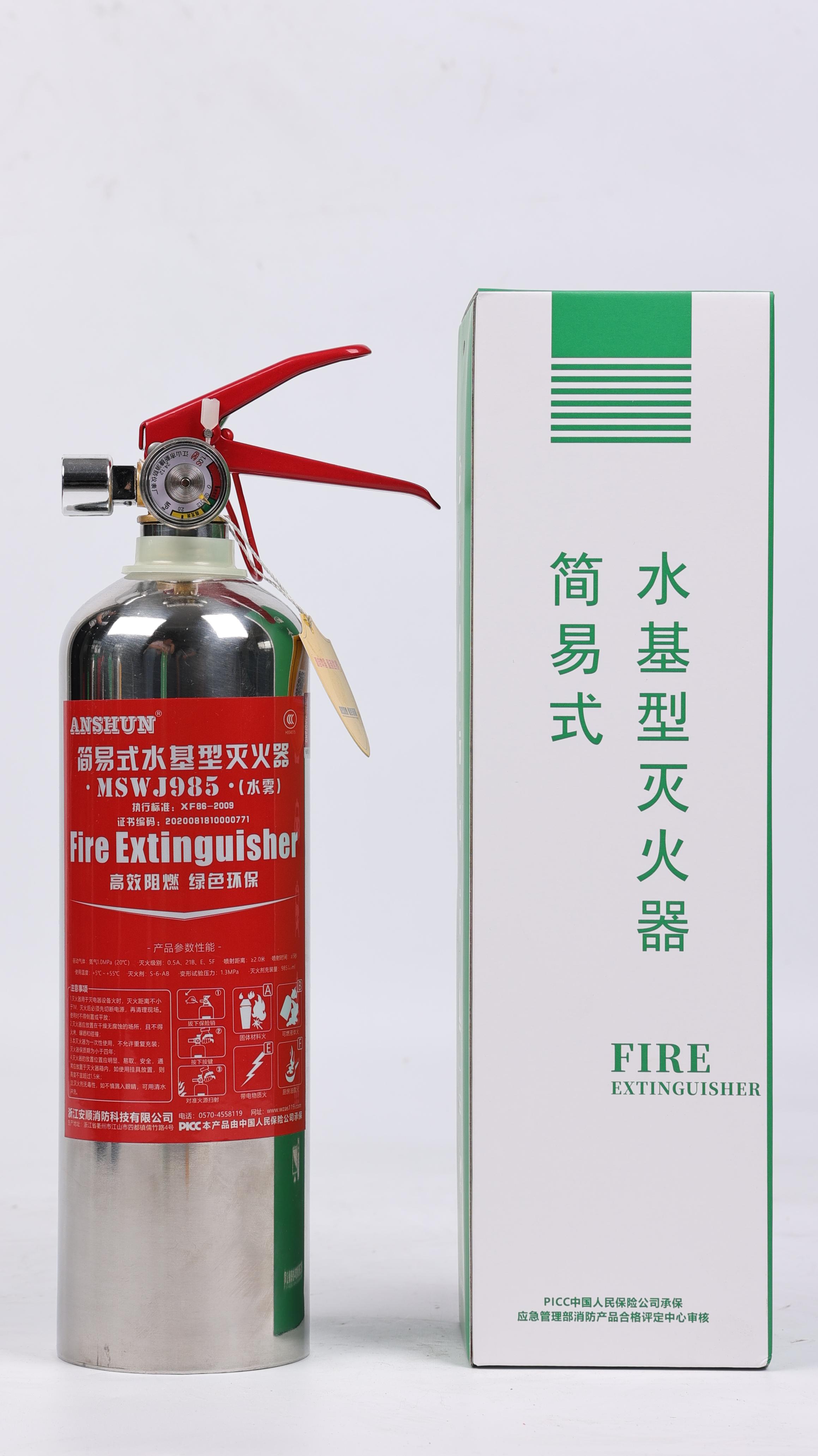 手提式水基型灭火器使用时,应手提灭火器提把,迅速奔到燃烧处。然后迅速拔出保险销,按下压把,此时泡沫即可喷出。泡沫喷出后,应对准燃烧最猛烈处喷射;灭火时,应随着喷射距离的缩减,使用者逐渐向燃烧处靠近,并始终让泡沫喷射在燃烧物上,直至将火扑灭。灭火器在使用时,一定要将灭火器保持直立状态,直至喷射完毕。