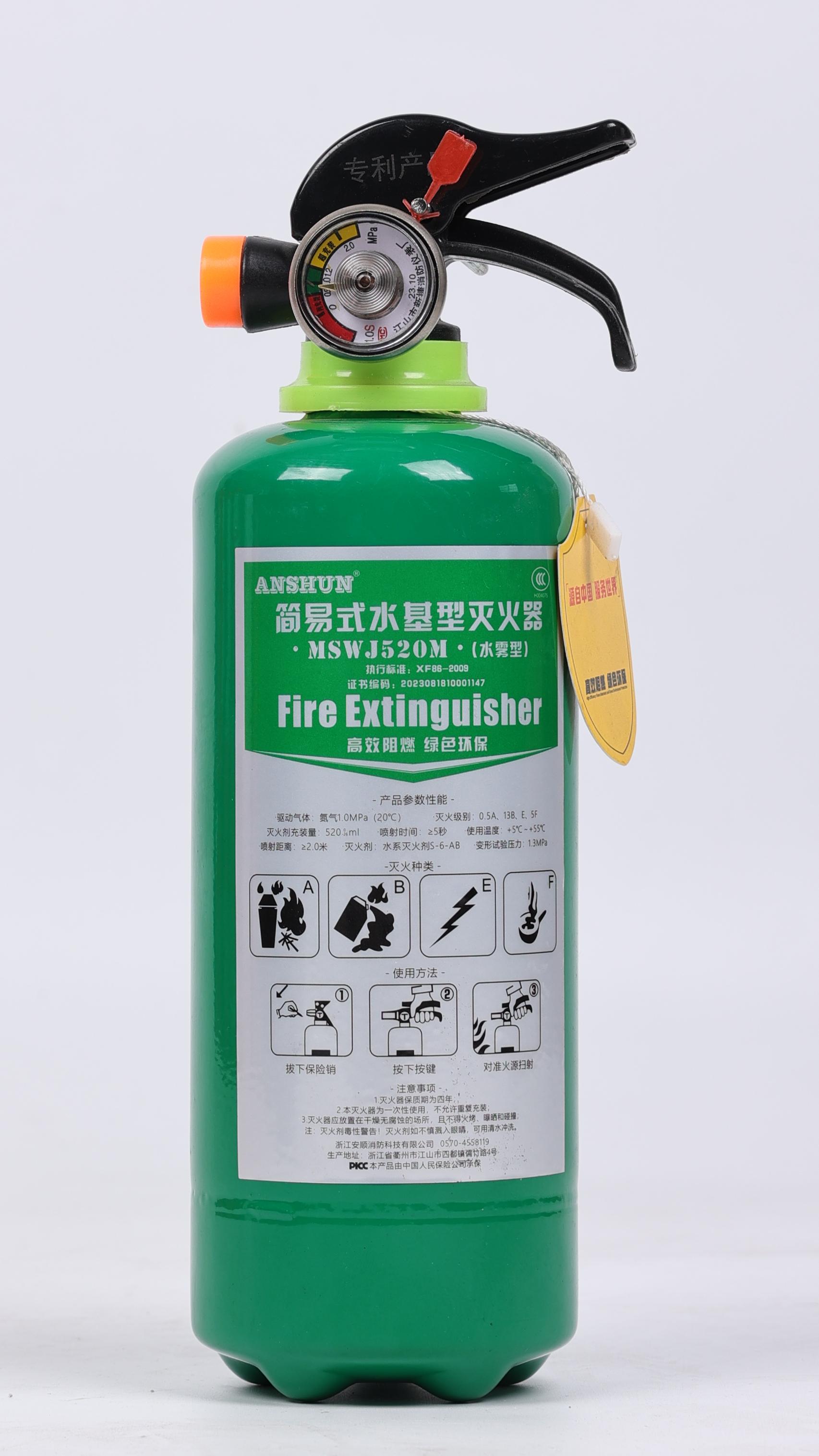 手提式水基型灭火器使用时,应手提灭火器提把,迅速奔到燃烧处。然后迅速拔出保险销,按下压把,此时泡沫即可喷出。泡沫喷出后,应对准燃烧最猛烈处喷射;灭火时,应随着喷射距离的缩减,使用者逐渐向燃烧处靠近,并始终让泡沫喷射在燃烧物上,直至将火扑灭。灭火器在使用时,一定要将灭火器保持直立状态,直至喷射完毕。